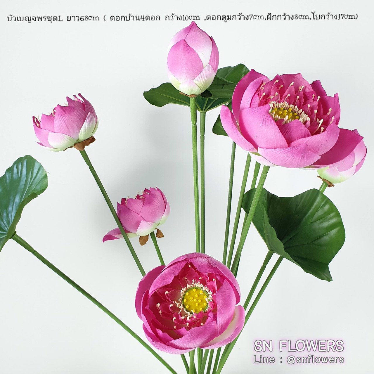 บัวเบญจพรชุด L ยาว 68 cm (ดอกบาน 4 ดอก กว้าง 10 cm ดอกตูม กว้าง 7 cm ฝักกว้าง 8 cm ใบกว้าง 17 cm
